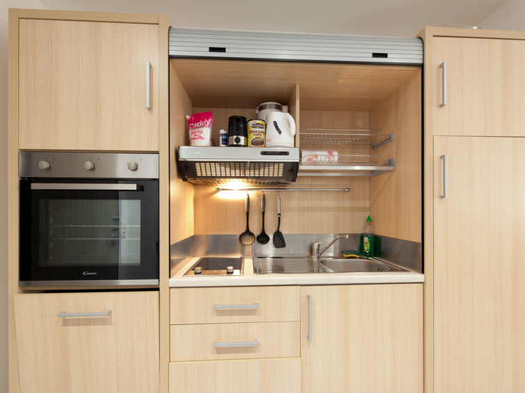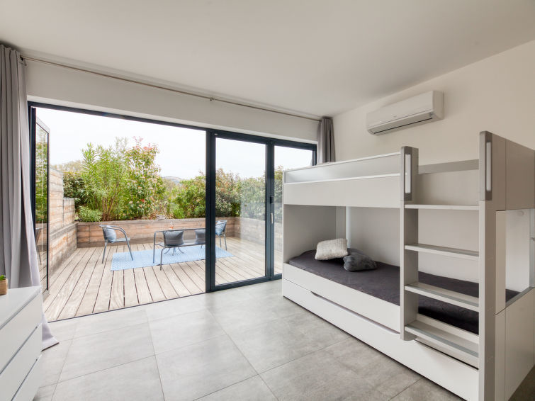 "Bastion", 2-Zimmer-Wohnung 50 m2, im Erdgeschoss. Komfortabel eingerichtet: Eingang mit 1 franz. Bett (160 cm, Länge 200 cm). Verbundenes Zimmer mit 1 x 2 Etagenbetten (90 cm, Länge 190 cm). Ausgang zur Terrasse. Offenes Wohn-/Esszimmer mit TV (Flachbildschirm). Kochnische (2 Kochplatten, Backofen, Geschirrspüler, Toaster, Wasserkocher, Mikrowelle, Tiefkühler, elektrische Kaffeemaschine). Dusche/WC. E-Heizung, Klimaanlage. Terrasse 15 m2. Terrassenmöbel. Zur Verfügung: Waschmaschine. Internet (WLAN, gratis). Bitte beachten: Telefon nur für Anrufempfang, Nichtraucher-Unterkunft. Rauchmelder. 2A2470000688F