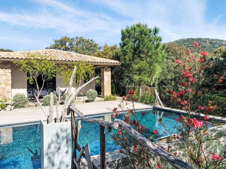 3 km von Saint Cyprien: Schöne Villa "La Cupulatta". Ruhige Lage, 2.4 km vom Meer, 2.4 km vom Strand. Zur Alleinbenutzung: Grundstück 2'000 m2 (eingezäunt), gepflegter Garten, Schwimmbad eckig (8 x 4 m, 150 cm tief, saisonale Verfügbarkeit: 01.Mai. - 30.Sep.). Aussendusche. Im Hause: Wireless LAN, Waschmaschine, Wäschetrockner. Wäschewechsel 1 mal wöchentlich. Handtuchwechsel 1 mal wöchentlich. Parkplatz, Einzelgarage. Einkaufsgeschäft 6 km, Lebensmittelgeschäft 6 km, Supermarkt 8 km, Bäckerei 6 km, Bushaltestelle 2.5 km. Sporthafen 3.7 km, Golfplatz (18 Loch) 44 km, Segelschule 3.6 km. Nahe gelegene Sehenswürdigkeiten: Plage de Saint Cyprien 2.4 km, Porto-Vecchio 12 km, Plage de Palombaggia 23 km, Plage de Santa Giulia 20 km, Citadelle de Bonifacio 40 km. Bekannte Seen in der Umgebung sind gut erreichbar: Lac de l'Ospédale 33 km. Wandergebiete: Aiguilles de Bavella 56 km. Bitte beachten: Fahrzeug empfohlen. Der Besitzer akzeptiert keine Jugendgruppen.