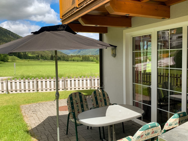 "Top 1", 2-Zimmer-Wohnung 50 m2, im Erdgeschoss. Komfortabel und gemütlich eingerichtet: Eingang. Wohn-/Esszimmer mit 1 Doppeldiwanbett (160 cm, Länge 200 cm), Sat-TV (Flachbildschirm). Ausgang zur Terrasse. 1 Doppelzimmer mit 1 Doppelbett (2 x 90 cm, Länge 200 cm). Offene Küche (Backofen, Geschirrspüler, 4 Glaskeramikplatten, Mikrowelle, Tiefkühler, elektrische Kaffeemaschine) mit Esstisch. Bad/WC. Parkettboden. Terrasse 20 m2, grosser Garten 30 m2. Schöne Sicht auf die Landschaft. Zur Verfügung: Waschmaschine, Wäschetrockner, Haartrockner. Internet (WLAN, gratis). Garage Nr. 1. Bitte beachten: Nichtraucher-Unterkunft. 1 Haustier/Hund erlaubt. Auch das schneesichere, tolle Skigebiet Obertauern ist nur 25 Autominuten entfernt. Skischuhtrockner und Abstellraum für Ski vorhanden. 50508-002501-2020