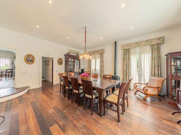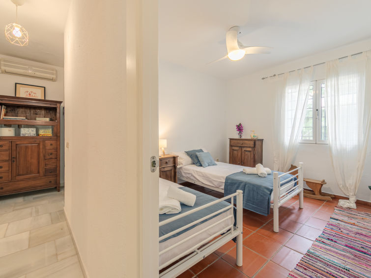"Las Codornices", 7-Zimmer-Villa 325 m2 auf 3 Stockwerken. Zweckmässig und komfortabel eingerichtet: grosses Wohn-/Esszimmer mit offenem Kamin, Digital-TV, Flachbildschirm, Radio, CD und DVD. 2 Zimmer, jedes Zimmer mit 1 franz. Bett (150 cm, Länge 190 cm), Bad/WC. 2 Zimmer, jedes Zimmer mit 2 Betten (90 cm, Länge 190 cm). 1 Zimmer mit 1 Bett (90 cm, Länge 190 cm). Grosse Küche (Backofen, Geschirrspüler, 4 Glaskeramikplatten, Toaster, Wasserkocher, Mikrowelle, Tiefkühler, elektrische Kaffeemaschine). Dusche/WC. Obergeschoss: 1 Zimmer mit 1 franz. Bett (150 cm, Länge 190 cm). 1 Zimmer mit 2 Betten (90 cm, Länge 190 cm), 1 x 2 Etagenbetten (90 cm, Länge 190 cm). Bad/WC. 2. Obergeschoss: Erker. Garten. Gartengrill, Liegestühle. Zur Verfügung: Waschmaschine, Bügeleisen, Kinderhochstuhl, Babybett bis 2 Jahre, Haartrockner. Internet (WLAN, gratis). Bitte beachten: geeignet für Familien. Nichtraucher-Haus. Maximal 1 Haustier/Hund erlaubt. VTAR/SE/00682