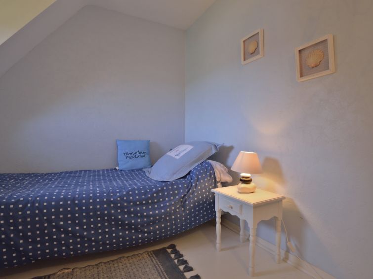 Maison individuelle "St Adrien". Dans un hameau, en bordure de la localité, à 2 km du centre de Fort Bloqué, à 1 km de la mer, dans une impasse. A usage privé: jardin 350 m2 (clôturé) avec pelouse et fleurs. Infrastructures de la Maison: réduit pour bicyclettes. Parking public possible dans la rue. Magasins 1.5 km, magasin d'alimentation 1.5 km, restaurant 1.5 km, arrêt de bus 6 km, plage de sable 1 km. Terrain de golf (18 trous) 2 km, centre équestre 2 km, chemins de randonnées pédestres depuis la maison, piste cyclable 400 m. Attractions à proximité: Ploemeur 6 km, Pont Aven 37 km, Carnac 52 km, Concarneau 58 km, Quimper 67 km, Zoo Pont Scorff, Lorient 14 km. Veuillez noter: voiture recommandée. Longère rénovée à proximité d'un étang avec possibilité de pêche (se munir d'une autorisation vendue au syndicat d'initiative).