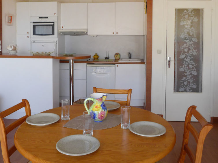 Appartement 2-kamers 43 m2 op de 2e verdieping, op het noorden gelegen. Woon-/eetkamer met 1 2-pers divanbed (140 cm, lengte 190 cm), TV (Flatscreen TV), elektrische rolluiken. Uitgang naar het balkon. 1 kamer met 1 2-pers bed (140 cm, lengte 190 cm), elektrische rolluiken. Uitgang naar het balkon. Open keuken (afwasmachine, 3 keramische glas kookplaten, broodrooster, waterkoker, elektrische koffiemachine, combimagnetron) met bar. Douche/WC. Parketvloeren. Balkon 3 m2, balkon 5 m2. Ligstoelen (2). Uitzicht op zee. Ter beschikking: wasmachine, strijkijzer. Internet (Internet (WiFi), extra). Rookmelders.
