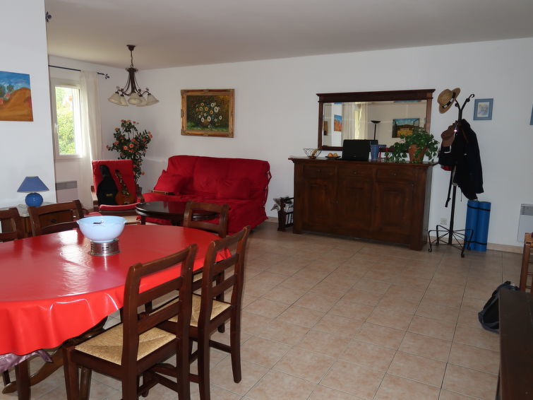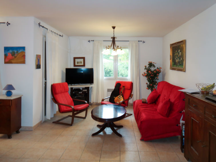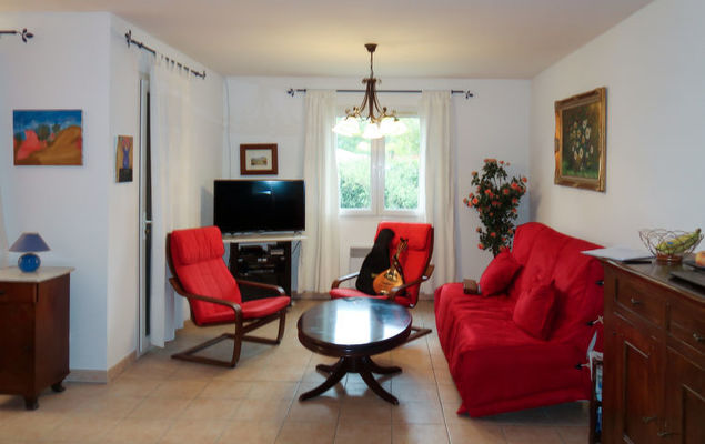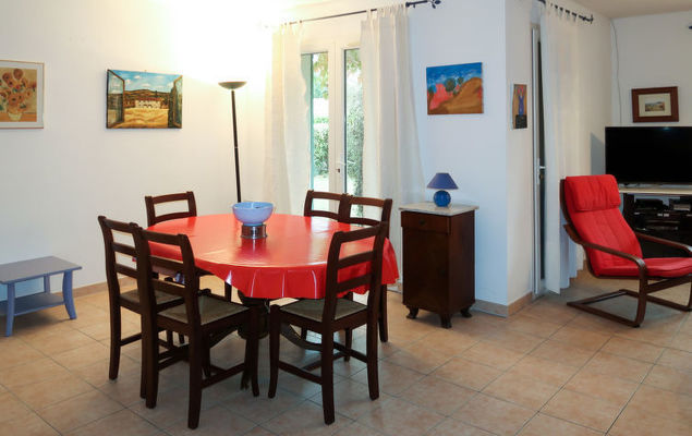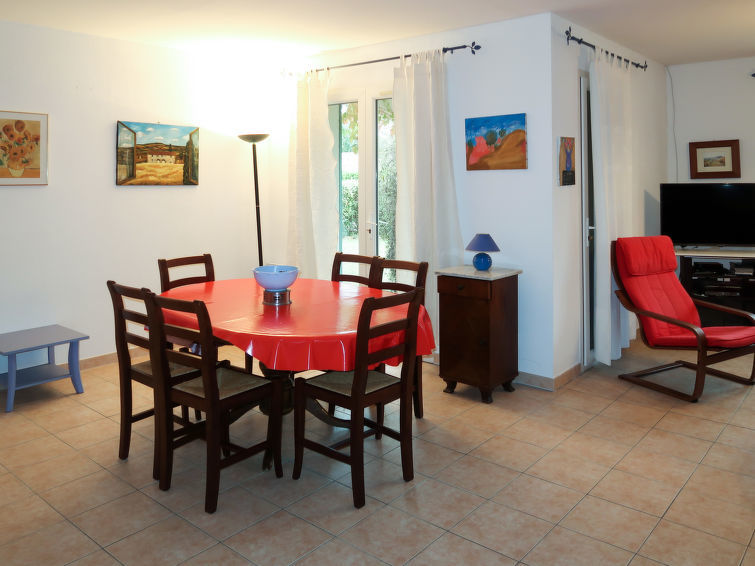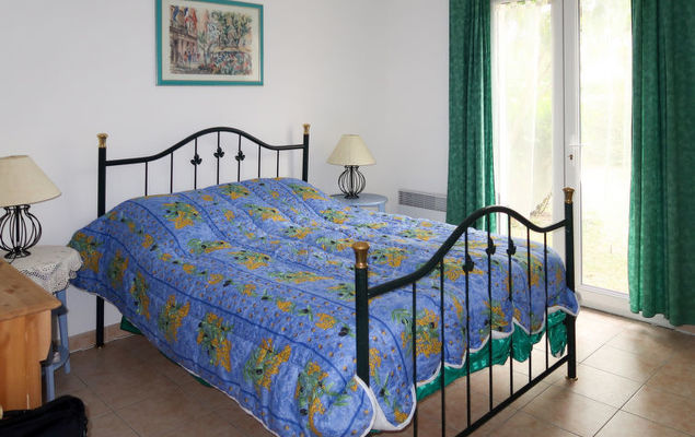"L'Orée du Golf (PVE100)", huis 3-kamers 75 m2. Licht, doelmatig ingericht: woon-/eetkamer met eettafel en Sat-TV. Uitgang naar het terras. 1 kamer met 1 2-pers bed. Uitgang naar de tuin. 1 kamer met 2 bedden. Open keuken (oven, afwasmachine, 4 keramische glas kookplaten, broodrooster, waterkoker, elektrische koffiemachine, combimagnetron) met bar, eettafel. Bad/WC, aparte WC. Elektrische verwarming. Klein terras 10 m2, overdekt terras 15 m2. Terrasmeubelen, barbecue, ligstoelen (3). Ter beschikking: wasmachine, droger, strijkijzer. Internet (Internet (WiFi), gratis). Let op: rookvrij huis.