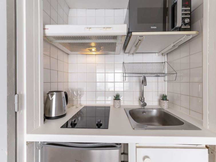 Appartement 1-kamer 20 m2 op de 1e verdieping. Gedeeltelijk gerenoveerd in 2022, comfortabel ingericht: woon-/eetkamer met 1 2-pers kastbed (1 x 140 cm, lengte 190 cm), TV (Flatscreen TV), air-conditioning. Uitgang naar het terras. Open keuken (2 keramische glas kookplaten, waterkoker, magnetron, elektrische koffiemachine, pads voor de koffiemachine (Nespresso) extra). Douche/WC. Heteluchtverwarming. Terras 5 m2. Terrasmeubelen. Ter beschikking: wasmachine. Internet (Internet (WiFi), extra). Niet rokers woning. Rookmelders. Aanbod door een particulier volgens art. 155, IV van CGI. 06029025360AK