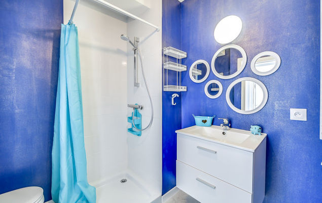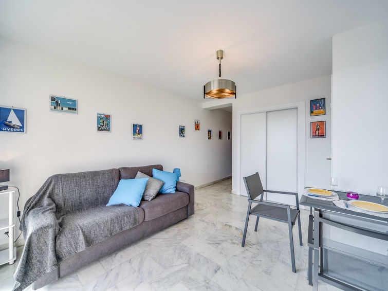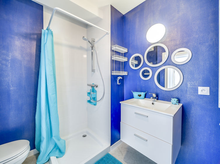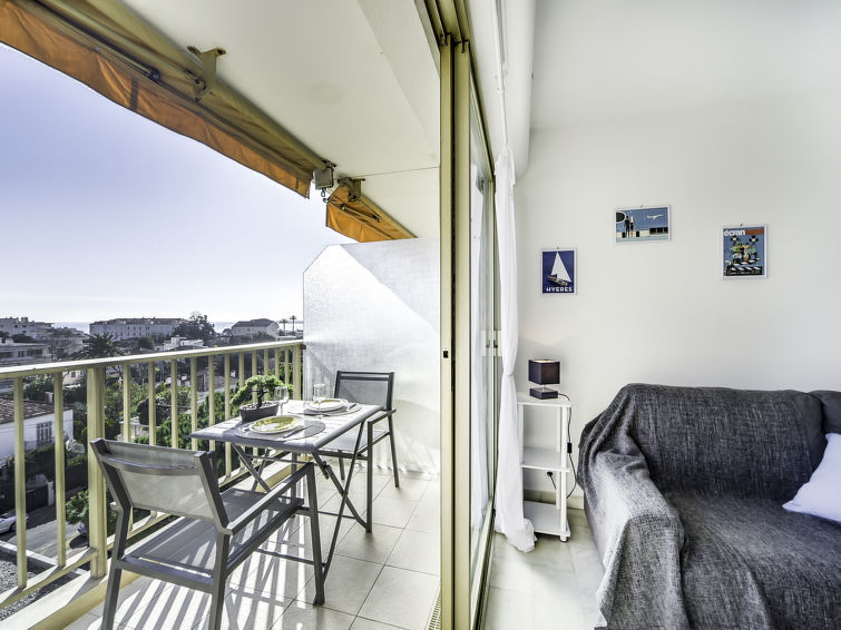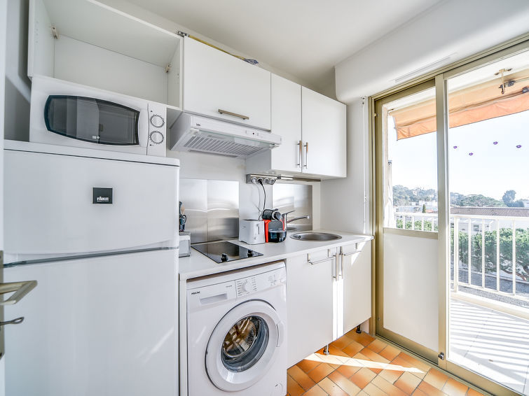 Studio 1-kamer 28 m2 op de 5e verdieping. Comfortabel en mooi ingericht: woon-/eetkamer met 1 2-pers divanbed (140 cm, lengte 190 cm), TV. Uitgang naar het terras. Keuken (2 keramische glas kookplaten, magnetron, elektrische koffiemachine, pads voor de koffiemachine (Nespresso) extra). Uitgang naar het terras. Douche/WC. Terras 12 m2. Terrasmeubelen. Uitzicht op zee. Ter beschikking: wasmachine. Internet (Internet (WiFi), extra). Let op: rookmelders. 06029004773WF