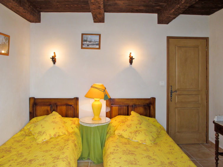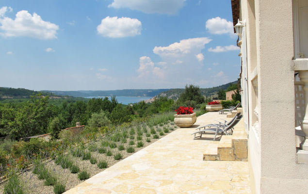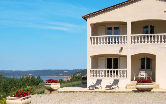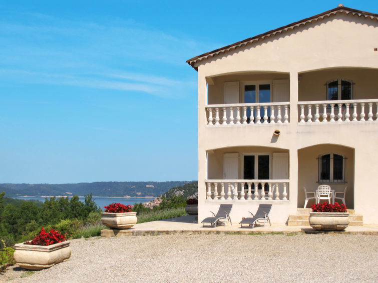 "Sainte Croix (LCC116)", appartement 3-kamers 63 m2, op de begane grond. Doelmatig en rustiek ingericht: woon-/slaapkamer met 1 2-pers divanbed, eettafel en Sat-TV. 1 kamer met 2 bedden. 1 kamer met 1 2-pers bed (140 cm). Open keuken (4-pits kookplaat, oven, afwasmachine, waterkoker, magnetron, diepvriezer, elektrische koffiemachine) met bar. Badkamer, aparte WC. Elektrische verwarming. Terras overdekt. Terrasmeubelen, ligstoelen (2). Mooi uitzicht op het meer en het landschap. Ter beschikking: strijkijzer. Internet (Internet (WiFi), gratis).