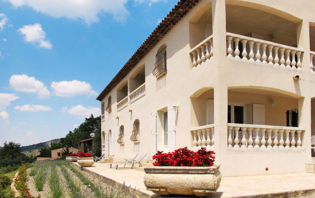 Rustieke landhuis "Campagne les Oliviers", omgeven door bomen en velden. 4 appartementen in de woning. In het gehucht Font Castellan, 2 km van het centrum van Bauduen, 17 km van het centrum van Aups, geïsoleerde, zonnige, verhoogde ligging tegen een helling, 200 m van het meer. Voor medegebruik: groot, verzorgde tuin op verschillende niveaus, 3.000 m2 (niet omheind) met planten en bomen, weide. In het huis: wasmachine (voor medegebruik). Steile toegangsweg tot aan het huis (rolstoelhelling). Parkeerplaats op het terrein. Winkel 2 km, baai 800 m, meer Lac de Sainte Croix 200 m. Let op: Bij deze accommodatie zijn meer vergelijkbare woningen te huur.