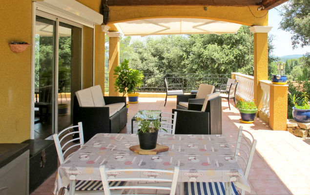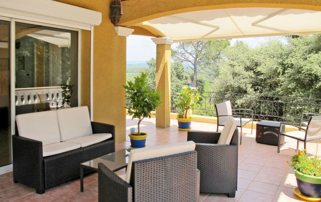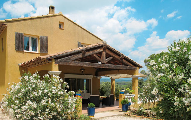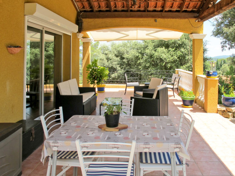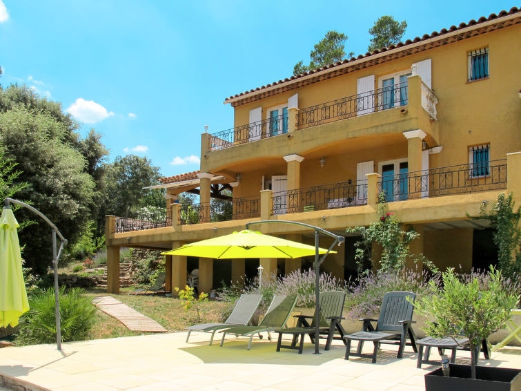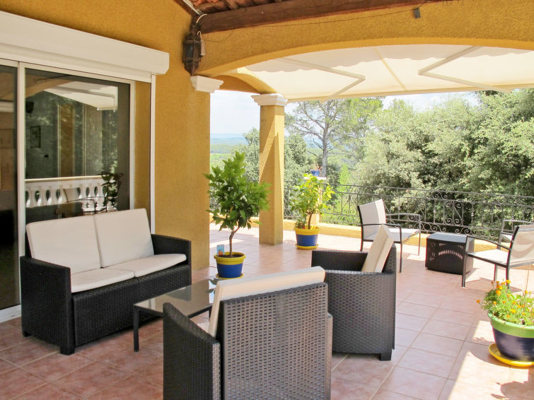 "La Belle Vue (MFT110)", huis 4-kamers 150 m2 op 2 verdiepingen. Ruim, rustiek en smaakvol ingericht: woonkamer met open haard (alleen decoratie), eettafel, TV, stereo-installatie en DVD. Uitgang naar het terras. Open keuken (afwasmachine, 4 kookpitten (vlammen), broodrooster, waterkoker, diepvriezer, elektrische koffiemachine, combimagnetron). Douche/WC. Bovenverdieping: 2 kamers, elke kamer heeft 1 2-pers bed (140 cm, lengte 190 cm), air-conditioning. Uitgang naar het balkon. 1 kamer met 1 2-pers bed (140 cm, lengte 190 cm). Badkamer, aparte WC, dubbele wastafels. Geen stookmogelijkheid. Groot terras overdekt. Terrasmeubelen, barbecue, ligstoelen (6). Mooi panoramazicht op het landschap en Cotignac (7 km). Ter beschikking: wasmachine, strijkijzer. Internet (Internet (WiFi), gratis). Let op: niet rokers woning. Rookmelders. 83083000009NU
