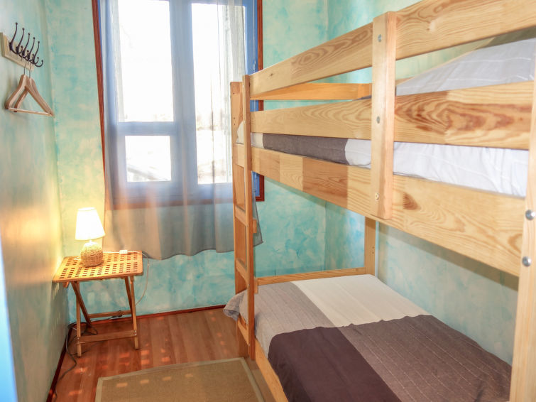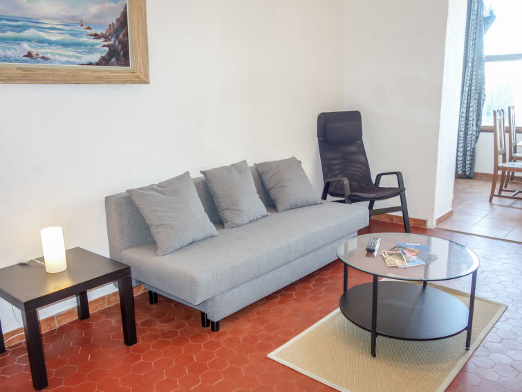 Appartement 3-kamers 48 m2, op de begane grond. Licht, comfortabel ingericht: woon-/eetkamer met TV (Flatscreen TV), ventilator. 1 kamer met 1 2-pers bed (1 x 160 cm, lengte 200 cm). 1 kamer met 1 x 2 stapelbedden (80 cm, lengte 200 cm). Open keuken (oven, afwasmachine, 3 keramische glas kookplaten, broodrooster, waterkoker, diepvriezer, elektrische koffiemachine, combimagnetron). Uitgang naar het terras. Douche, aparte WC. Elektrische verwarming. Terras 18 m2. Terrasmeubelen, elektrische barbecue. Mooi panoramazicht op zee. Ter beschikking: wasmachine, strijkijzer, kinderbed tot 2 jaar. Internet (WiFi, gratis). Maximaal 1 klein huisdier/hond toegestaan. TV alleen FR. Rookmelders.