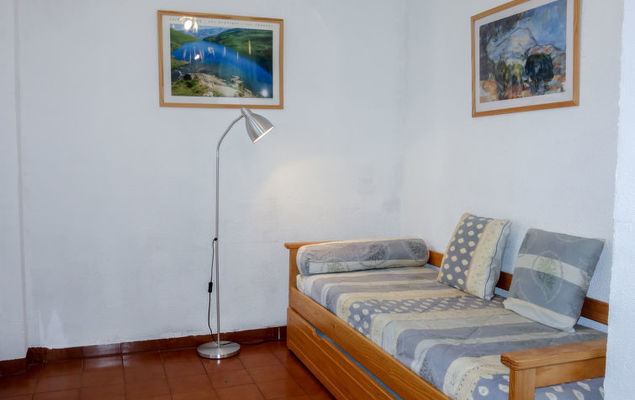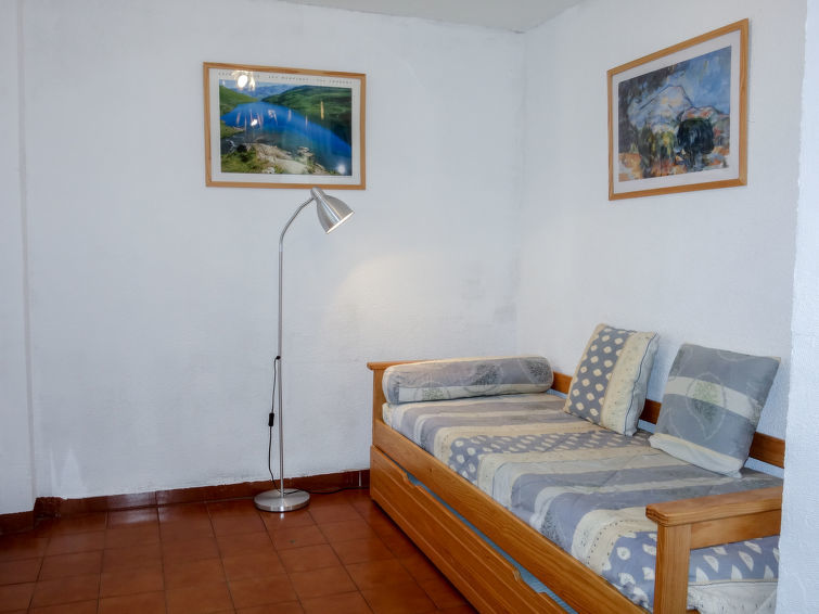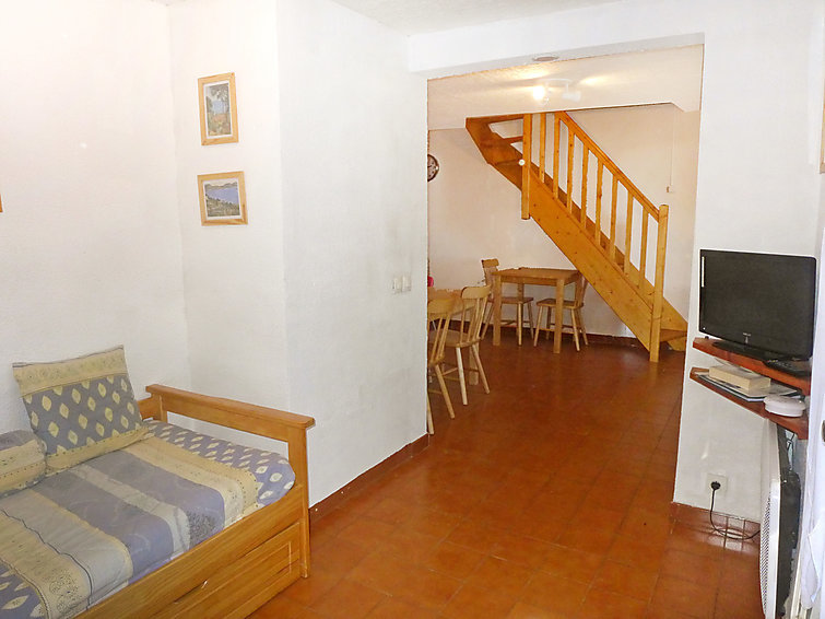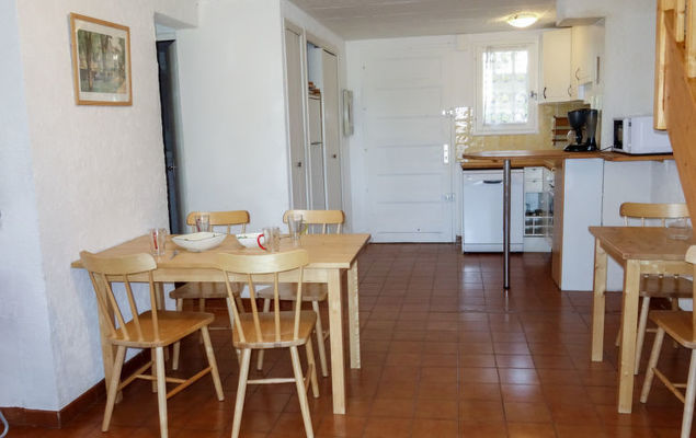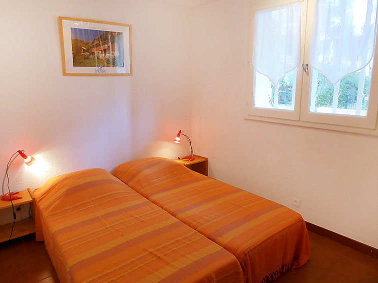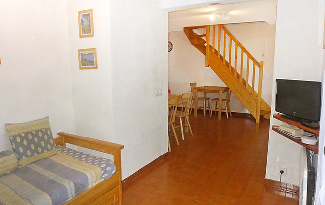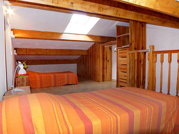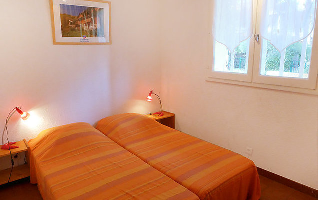 Appartement 3-kamers 46 m2 op de 1e verdieping. Mooi ingericht: woon-/eetkamer met 1 uitschuifbaar bed (2 pers. 2 x 80 cm, lengte 190 cm), TV (Flatscreen TV). Uitgang naar het terras. 1 kamer met 2 bedden (80 cm, lengte 190 cm). Kookhoek (oven, afwasmachine, 4 inductiekookplaten, broodrooster, waterkoker, magnetron, diepvriezer, elektrische koffiemachine). Badkamer, aparte WC. Bovenverdieping: (steile trap) groot galerij met afgeschuinde daken met hoogte van het plafond 85 - 190 cm met dakraam met 2 bedden (80 cm, lengte 190 cm). Terras 10 m2, overdekt, op het noordoosten gelegen. Terrasmeubelen. Uitzicht op de tuin. Ter beschikking: wasmachine, strijkijzer. Internet (Internet (WiFi), extra). Parkeerplaats nr. 14. Let op: TV alleen FR. Rookmelders. 83009 000001 QR