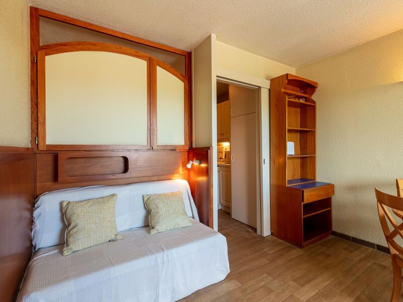 Studio 1-kamer 23 m2 op de 3e verdieping. Licht, comfortabel ingericht: woon-/eetkamer met 1 2-pers divanbed (140 cm, lengte 190 cm), eettafel en TV (Flatscreen TV). Uitgang naar het terras. Cabine met gordijn met 1 uitschuifbaar bed (2 pers. 2 x 80 cm, lengte 190 cm). Keuken in de hal (afwasmachine, 2 keramische glas kookplaten, broodrooster, waterkoker, magnetron, elektrische koffiemachine). Bad/WC. Elektrische verwarming, air-conditioning. Terras 6 m2. Terrasmeubelen. Mooi uitzicht op het landschap. Ter beschikking: wasmachine. Internet (Internet (WiFi), extra). Parkeerplaats nr. 2 sous-sol. Koelkast zonder vriesvak, parkeerplaats alleen voor een kleine auto. 1 klein huisdier/hond toegestaan. TV alleen FR. Rookmelders. In plaats van een afgesloten slaapkamer bevinden sommige slaapgedeeltes zich in een open ruimte (galerij, nis, etc.). Aanbod door een commerciële eigenaar volgens art. 155, IV, CGI