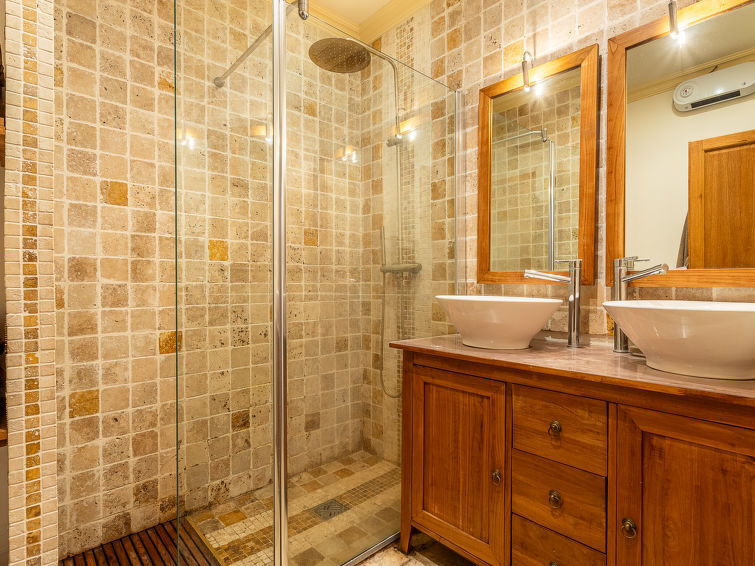 Villa 6-kamers 100 m2. Ruim en licht, mooi ingericht: woon-/eetkamer met eettafel en TV (Flatscreen TV). Uitgang naar het terras, naar het zwembad. Salon met panoramavenster met bibliotheek. Uitgang naar het terras. 1 kamer met 1 2-pers bed (2 x 90 cm, lengte 200 cm). 1 kamer met 1 2-pers bed (160 cm, lengte 200 cm). Uitgang naar het balkon. 1 kamer met 1 2-pers bed (140 cm, lengte 190 cm). Uitgang naar het terras. 1 kamer met 2 x 2 stapelbedden (90 cm, lengte 190 cm). Uitgang naar het terras. Kookhoek (oven, afwasmachine, 4 keramische glas kookplaten, broodrooster, waterkoker, magnetron, elektrische koffiemachine). Bad/WC, douche, aparte WC, dubbele wastafels. Elektrische verwarming, air-conditioning. Natuurstenen vloeren. Groot terras, op het zuiden gelegen, groot terras, op het noorden gelegen. Terrasmeubelen, ligstoelen. Uitzicht op het zwembad. Ter beschikking: wasmachine, droger, haardroger. Internet (WiFi, gratis). Geschikt voor families. Niet rokers woning. 1 klein huisdier/hond toegestaan. TV alleen FR. Rookmelders. Aanbod door een particulier volgens art. 155, IV van CGI. 83071000757AO