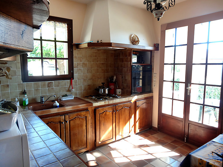 Huis 5-kamers 140 m2 op 2 verdiepingen. Antiek ingericht: hal. Woon-/eetkamer 25 m2 met TV. Uitgang naar het terras. 2 kamers, elke kamer heeft 1 2-pers bed (140 cm). Keuken (4-pits kookplaat, oven, afwasmachine, magnetron, diepvriezer) met eettafel. Uitgang naar het terras. Douche, aparte WC. Bovenverdieping: (steile trap), 1 kamer met afgeschuinde daken, hoogte van het plafond 150 - 200 cm met 1 bed (130 cm), wastafel. 1 kamer met afgeschuinde daken, hoogte van het plafond 150 - 200 cm met 2 bedden (80 cm). Elektrische verwarming (extra). Verwarming alleen beschikbaar van 01.11. tot 30.04. Terras 20 m2, overdekt. Terrasmeubelen, barbecue. Ter beschikking: wasmachine, kinderbed. Let op: 1 klein huisdier/hond toegestaan. Rookmelders.