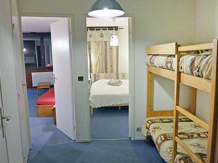 Appartement 2-kamers 40 m2 op de 2e verdieping. Woon-/eetkamer met (80 cm), 1 2-pers divanbed (160 cm, lengte 200 cm). Hal met 1 x 2 stapelbedden (80 cm), TV. 1 kamer met 1 2-pers bed (140 cm). Kookhoek (4-pits kookplaat, mini-oven, afwasmachine, magnetron). Badkamer, aparte WC. Balkon, op het zuiden gelegen. Zeer mooi uitzicht op de skipiste. Ter beschikking: Internet (Internet (WiFi), extra). Rookmelders.