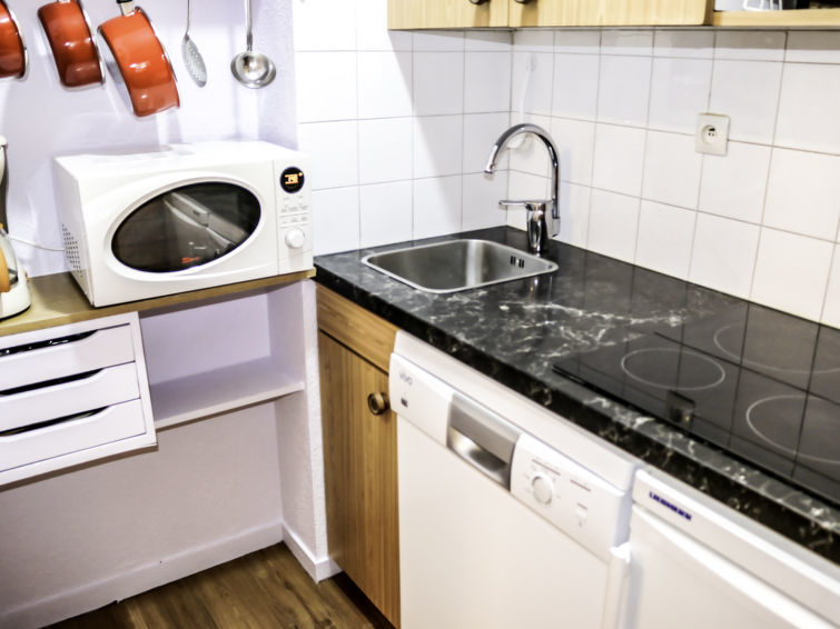 Appartement 1-kamer 25 m2 op de 3e verdieping. Woon-/eetkamer met 1 2-pers divanbed (1 x 140 cm, lengte 190 cm) (2 pers. 2 x 80 cm), TV en Flatscreen TV. Cabine met 1 x 2 stapelbedden (80 cm). Kookhoek (4-pits kookplaat, afwasmachine, magnetron, elektrische koffiemachine). Badkamer, aparte WC. Balkon, op het zuiden gelegen. Terrasmeubelen. Ter beschikking: Internet (Internet (WiFi), extra). Niet rokers woning. Rookmelders. In plaats van een afgesloten slaapkamer bevinden sommige slaapgedeeltes zich in een open ruimte (galerij, nis, etc.).